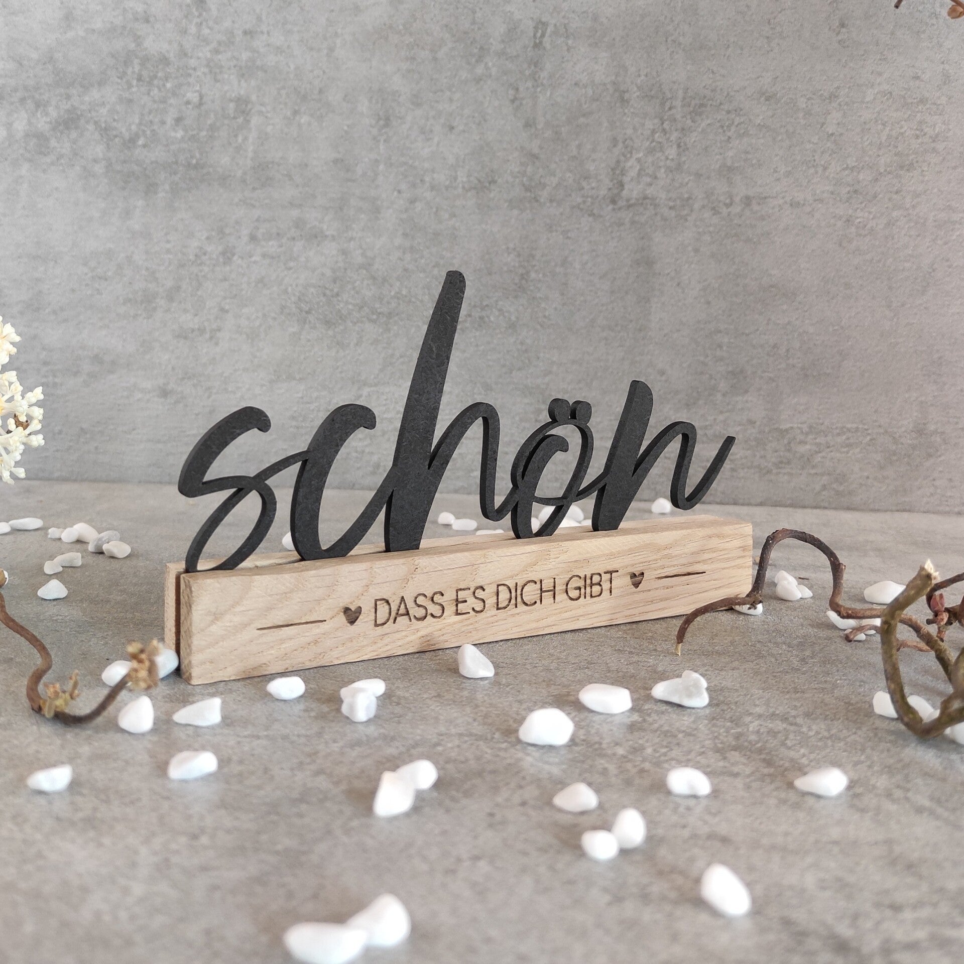 Glück: Holz geschnitten und bemaltAufsteller: gelasert